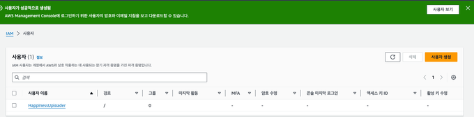 후 권한 요약을 확인한 뒤 생성을 누른다. 그럼 다음과 같이 생성이 되었을 것이다.