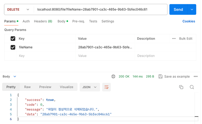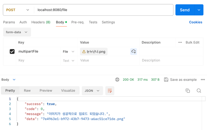 구현한 기능이 잘 작동하는지 Postman에서 확인해보자. 개별 파일 업로드 기준으로 테스트하였다.